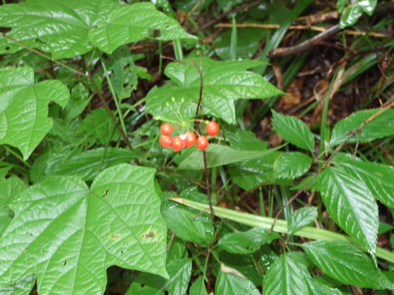 クサキの実かな? ヤマイチゴ?? イヤリングにいかが? 食べてはいけないよ ヘビイチゴ これは何の実 まだ咲いているよ ヤマアジサイ アッ!また見つけた オカトラノオ