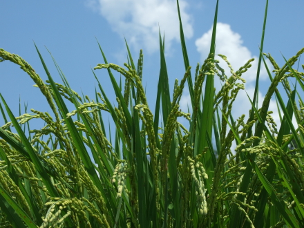 稲穂はまだまだ青いけど 頭を垂れはじめ