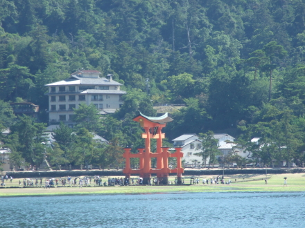 夏休み最初の日曜日 宮島は海水浴の家族連れでにぎわっていました