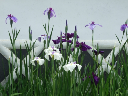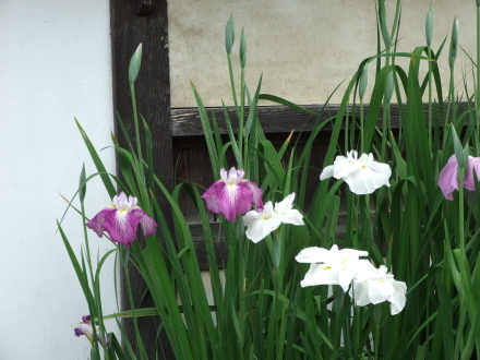 白壁と花菖蒲
