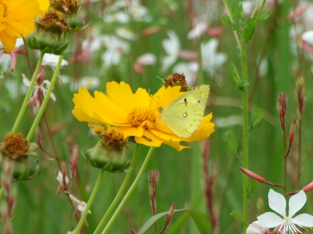 黄色いキンケイギクに黄色いモンキチョウ